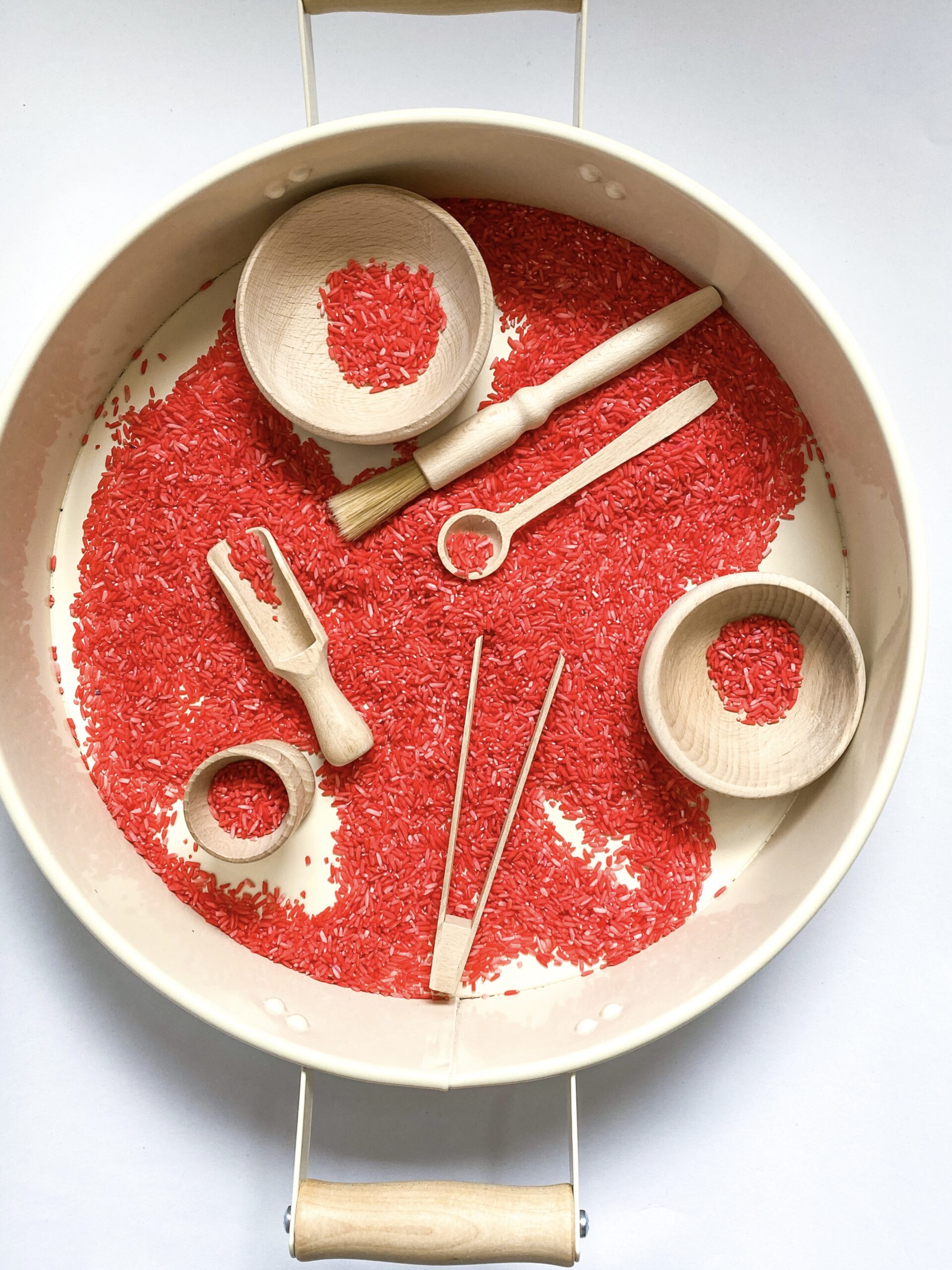 Zestaw taca z farbowanym ryżem + akcesoria.